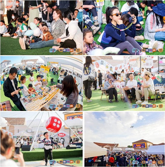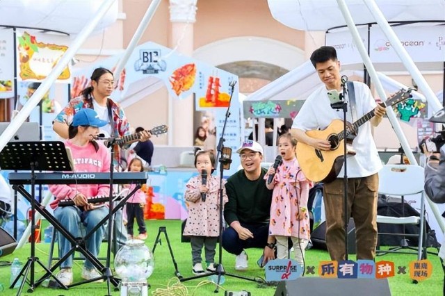 在涂鸦、拼贴活动现场,人们尽情在涂鸦墙上挥洒颜料,自由拼贴各种材料,以寻找内心情感和生活经验的触点,这些活动深深吸引了现场的大朋友和小朋友,大家共同奔赴由色彩、线条、材料、创意等组成的星辰大海。在中央舞台或街头表演区,观众同样也可以参与到演奏与演唱的互动中,身份瞬间转换为一名歌手或者街头艺人,展现自己的文艺才华。