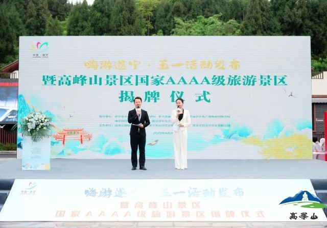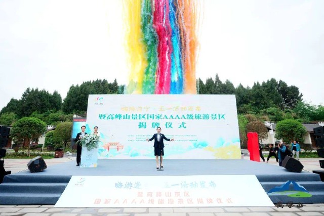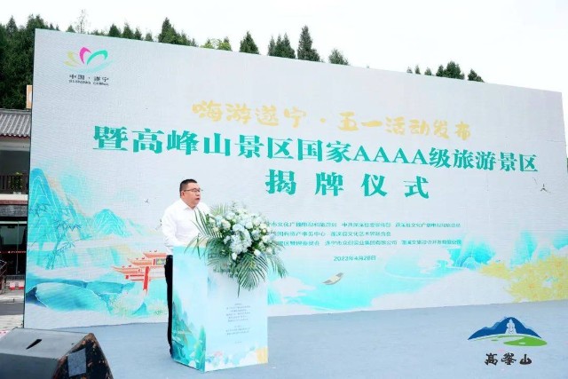 2023年4月28日,由遂宁市文化广电旅游局、中共蓬溪县委宣传部、蓬溪县文化广电旅游局、蓬溪县国资事务管理中心、蓬溪县文化艺术界联合会指导,由高峰山景区管理委员会、遂宁市众创实业集团有限公司、蓬溪文旅投资开发有限公司主办的“嗨游遂宁五一活动发布暨高峰山国家AAAA级旅游景区揭牌仪式”,在高峰山游客中心正式拉开帷幕。市文化广电旅游局党组成员、副局长张黎、县人大常委会主任文勇、县政协主席杨军、县委副书记王莉、县委常委、县委宣传部部长赵锋、县政协副主席王波、蓬溪县各老领导代表出席了本次活动,县委常委、县委宣传部部长赵锋致欢迎辞,政协副主席王波宣读四川省旅游资源规划开发质量评定委员会文件,蓬溪文旅投资开发有限公司执行董事兼总经理谢三英就高峰山景区规范化运营、管理作表态发言,并介绍高峰山景区“五一”期间系列活动,市文化广电旅游局党组成员、副局长张黎推介“燃情五月 邀你一起嗨游遂宁”文化旅游活动,县文化广电旅游局党组书记、局长何英推介蓬溪县“从百草园到三味书屋”四季畅游夏季旅游主题活动,县委副书记王莉宣布2023蓬溪县“从百草园到三味书屋”四季畅游夏季主题活动启动。