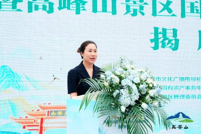 蓬溪文旅投资开发有限公司执行董事兼总经理谢三英在对高峰山景区规范化运营、管理作表态发言中表示,高峰山景区于2022年10月20日开园试运行以来,以研学为抓手,积极推介孝道和本草养心文化,坚持“景区一盘棋、一专多能、一人多岗、高效运行”的基本原则和思路,锻造运营管理团队。近年来,我们紧紧围绕省市对蓬溪的定位,大力发展文化旅游产业,高峰山景区是我县加快建设“知名文旅县”、争创省级“全域旅游示范区”的重大支撑性项目。2023年“五一”是高峰山开启4A级旅游景区新篇章的第一个假期。4月28日至5月3日,景区以“趣味互动,问道高峰”为主题,推出了“养心高峰、雕版高峰、墨色高峰、趣玩高峰、拥抱高峰”等系列主题活动。在今后的运营中将以高峰山4A级景区为契机,紧扣“1337”总体思路,坚持“六化同步”,创新思路,奋力赶超。