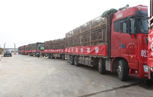 近日,江苏乾宝牧业公司、新疆巴州畜牧局以及天苗集团兴牧源公司共同举办了万只湖羊进疆启运仪式。在乾宝牧业公司内,到处都是一派欢声笑语、热火朝天的景象,调运新疆的万只种羊正在装车,几十辆装满湖羊种羊的大卡车,挂红花、披横幅,整装待发。