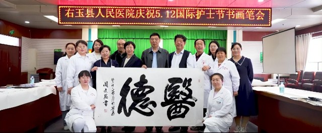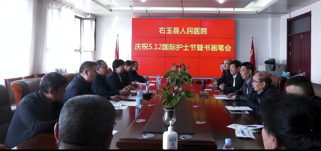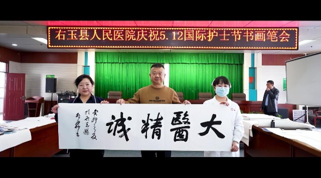 右玉县委宣传部部长刘青春、县政法委书记刘瑞东、县政府常务副县长刘兴中等县领导和县总工会主席郝旭日、县文联主席郭虎等部门领导亲临县人民医院指导支持。会上刘兴中副县长致辞,他对书法协会各位主席到来表示欢迎和感谢,对“5•12”国际护士节全体护士在疫情防控作出的贡献表示感谢,对全体医护人员维护群众健康做出的贡献表示感谢,并鼓励大家在工作的同时丰富多方面生活。刘兴中副县长认为此次书画笔会非常有意义,希望长期坚持下去。