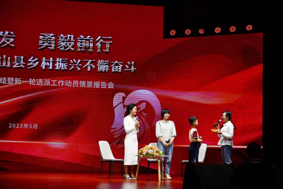 情景报告会在微视频《种子》中拉开序幕。接着,报告会以电视短片、微视频、诗歌朗诵、歌舞和现场访谈等方式,多层面、多角度回顾两年来驻村工作的点点滴滴,用朴实的语言、感人的故事和生动的画面讲述了驻村工作队员过去两年来扎根基层、奉献乡村、带领群众增收致富的动人事迹,展示了我县在后盾单位及驻村工作队的共同努力下在巩固拓展脱贫攻坚成果同乡村振兴有效衔接工作中取得的累累硕果,既是对过去两年驻村工作的回顾,也是对新一轮驻村工作队的鼓励和鞭策。报告会还邀请了部分后盾单位代表、所驻村群众代表以及部分驻村第一书记家属进行访谈,通过他们的深情讲述展示了驻村第一书记们一心为民、服务群众的情怀。报告会中,部分驻第一书记还上台倾情演绎,展示了他们活泼开朗、多才多艺的另一面,整场报告会温馨、感人,积极向上,充分展示了驻村工作队员们勇于担当、忠于人民、无私奉献的崇高品质,他们的感人故事和精彩表演获得了现场观众的阵阵掌声。