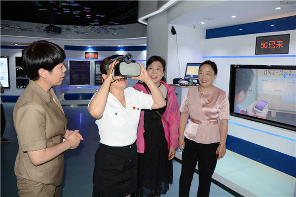 6月8日,淮安市清江浦区女企业家商会成员参观中国电信淮安分公司“智慧城市5G体验馆”。讲解员为大家介绍通信行业发展的历程,带领大家参观了智慧政务、智慧医疗、智慧教育、智能视频监控、5G智能应用、云计算、物联网几大展区,让女企业家们亲身体验5G云VR技术,感受5G给工作、生活等带来的巨大变化。图为参观体验时的情景。