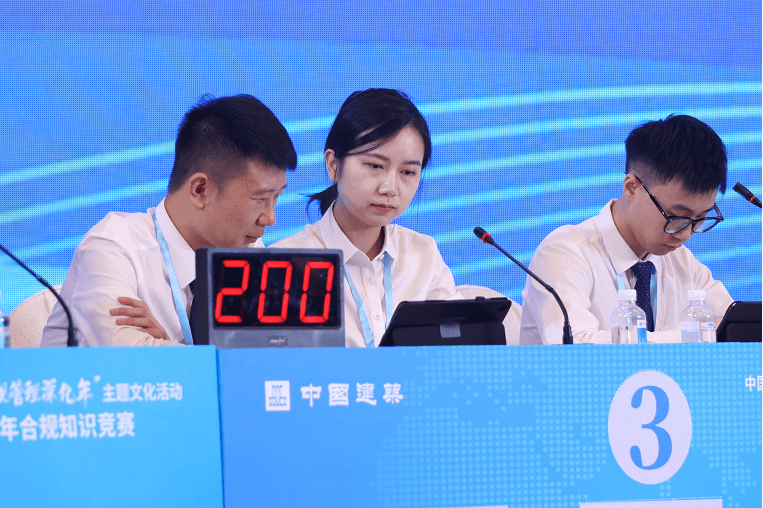 整个赛程分为初赛网络答题和决赛现场竞赛两个阶段。在初赛阶段,中建集团以“合规进一线 全体总动员”为目的,利用线上线下媒介,通过建立参赛激励机制、分数晾晒机制、全流程普法服务机制,依托工作群、工作会、合规培训等载体,广泛发动全体员工积极参赛,全集团40万人次参与网络答题,建立了横纵协同联动机制,通过网格化一体化推进,推动全员合规理念深入人心,合规文化培育全覆盖,提升全员合规意识。