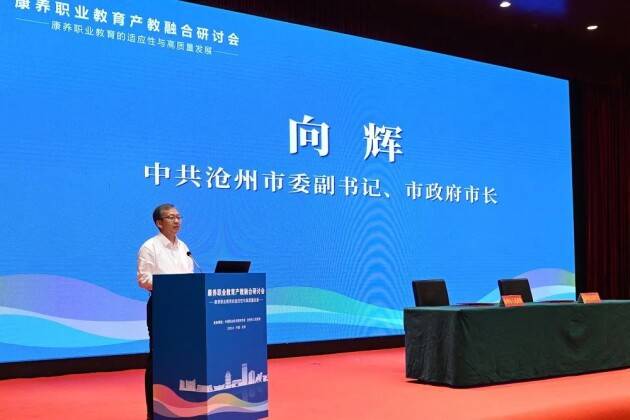 沧州市人民政府市长向辉表示,希望和中国职业技术教育学会加强合作,积极落实战略协议,推进沧州康养产业可持续发展,让更多康养项目、创新成果落地沧州,共同深耕康养沃土,携手打造康养职业教育产教融合新典范。