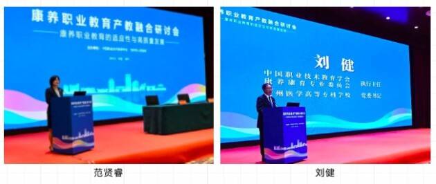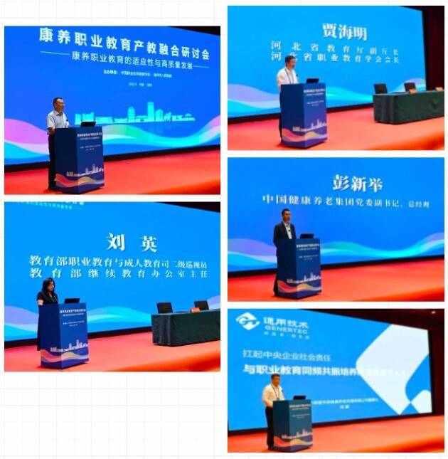 中国职教学会常务副会长兼秘书长刘建同,教育部职业教育与成人教育司二级巡视员、继续教育办公室主任刘英,河北省教育厅副厅长、河北职业教育学会会长贾海明,中国健康养老集团党委副书记、总经理彭新举,通用技术集团健康养老产业公司副总经理、国中康健华录健康养老发展有限公司董事长姚冀分别致辞,他们表示,新征程职业教育承载新使命,要携手搭建共建共享合作交流平台,建设康养行业产教融合共同体,在技能培训、教材开发、人才培养、校企合作等方面,深化康养职业教育产教融合,汇聚职业院校、中央企业等产教科资源,为康养产业高质量发展培养高素质技术技能人才,为建设教育强国、推进中国式现代化贡献职教力量。