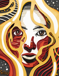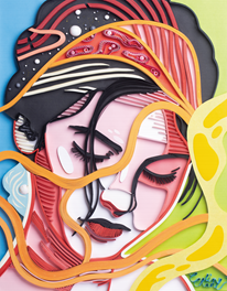 陈颖瑜的作品色彩鲜豔,细腻的线条中散发出强烈的视觉衝击力,画面构图美丽迷人,如幻如梦,画面形象鲜明,处处显现出清丽脱俗的高雅精神,令人印象深刻。这三张作品是以希腊女神为主题创作的,这三位女神各有其特色,她们分别代表著不同女性的人格,这个系列的衍纸作品正是启发自其中三位女神的精神特质。陈颖瑜通过其独特的艺术演绎手法生动地把女性各种不同的美态呈现给观众眼前,创造出一种焕然一新的视觉衝击。同时,这三张作品总共使用了约3000米长度的纸条,由不同颜色和形态的立体纸块组合而成,表现出艺术家对衍纸这种独特艺术的技巧和热爱。