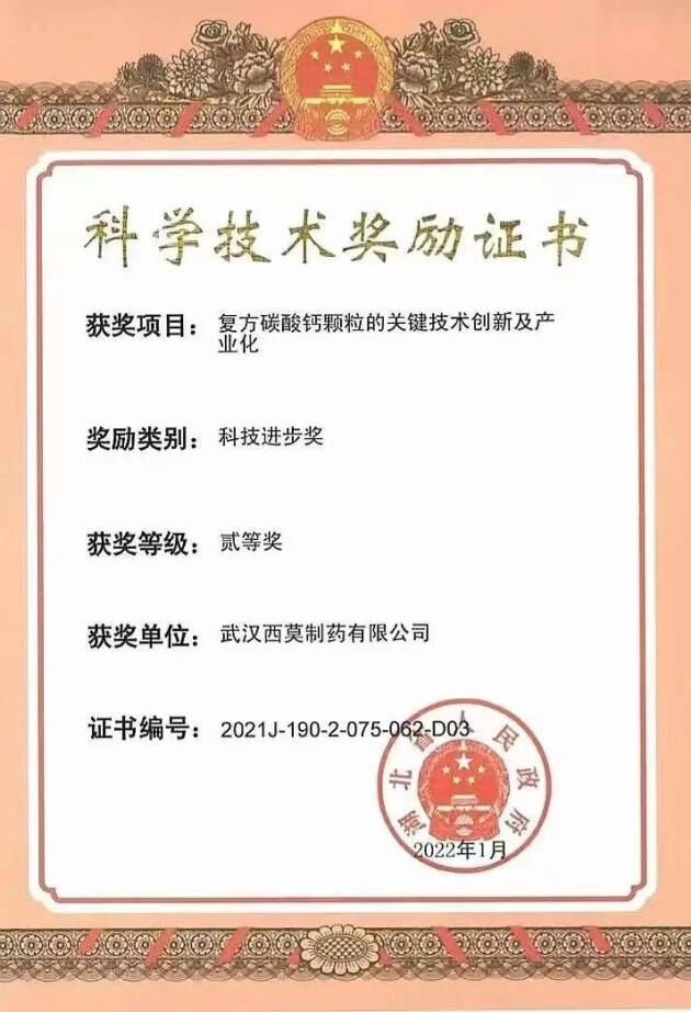 近期,湖北省科技创新大会公布了2021年度湖北省科学技术奖获奖名单,其中武汉西莫制药有限公司(简称,武汉西莫制药)的“复方碳酸钙颗粒的关键技术创新及产业化”项目荣获湖北省科学技术进步奖二等奖,也是2021年湖北省内获奖的唯一创新药企。