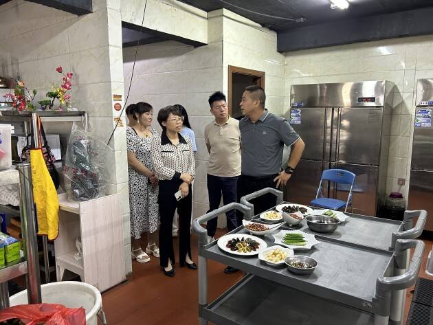在皖蜀人家大酒店,街道党工委书记程婷细致查看经营户是否安装燃气报警装置,燃气软管、燃气器具是否损坏,是否使用合格产品,厨房空间是否是有限空间等。
