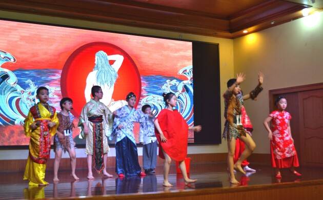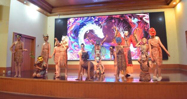 国风情景剧汇演以《山海经》之《开天辟地》为序幕,小演员们倾情演绎了《女娲补天》、《后羿射日》、《夸父追日》、《嫦娥奔月》、《精卫填海》等经典神话故事,以美妙的舞台形象,精彩的展现出中华文明中“夸父精神”、“后羿气概”、“精卫意志”、“女娲气度”等文化底蕴和精神力量。
