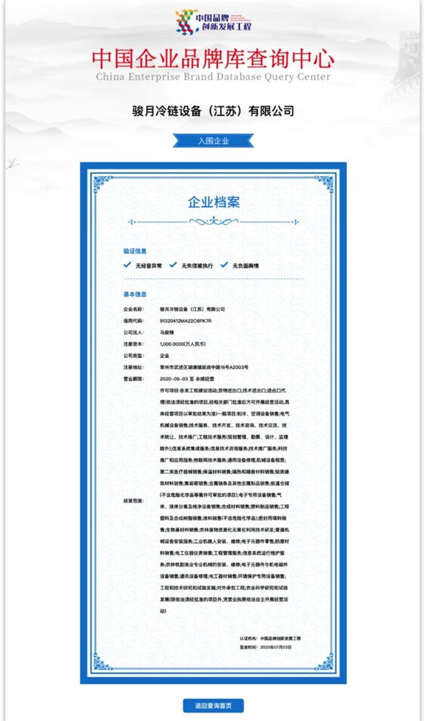2023年6月30日,“中国品牌创新发展工程”入围暨2023特别节目选题活动在北京举行,骏月冷链设备(江苏)有限公司总经理马俊锋应邀出席本次活动,从诸多企业品牌中脱颖而出,成功入围“中国品牌创新发展工程”中国企业品牌库。