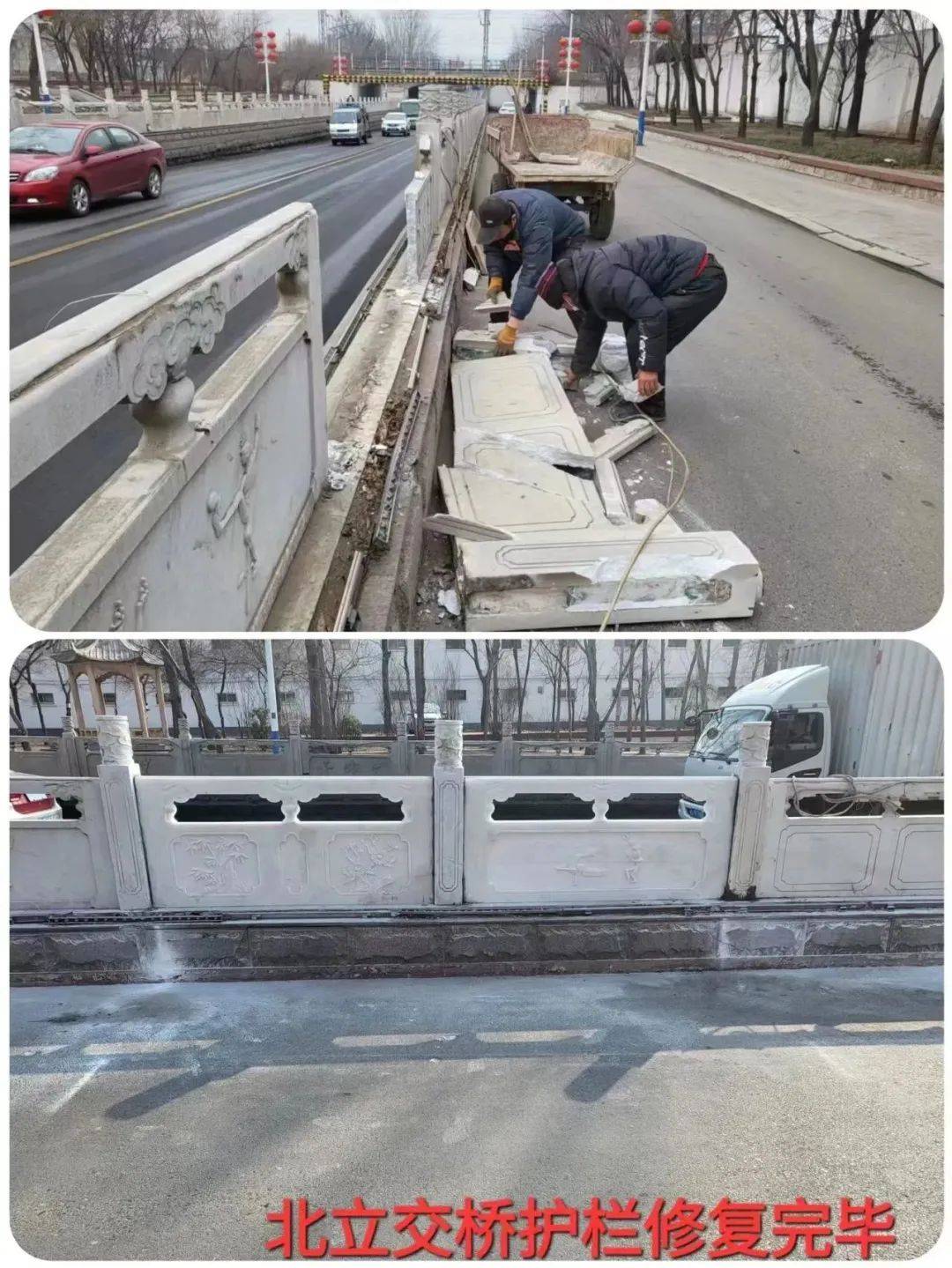 截止目前,共计更换各类井盖、水篦子、盖板、收水口盖等市政设施20余处;修复破损路面、人行道60余处;更换路沿石40余处;修复破损公交站牌、桥梁护栏3处,通过解决群众生活中的一个个具体问题,实现城市面貌的不断改善和居民生活环境的不断提升。 (刘益光 王亚楠)