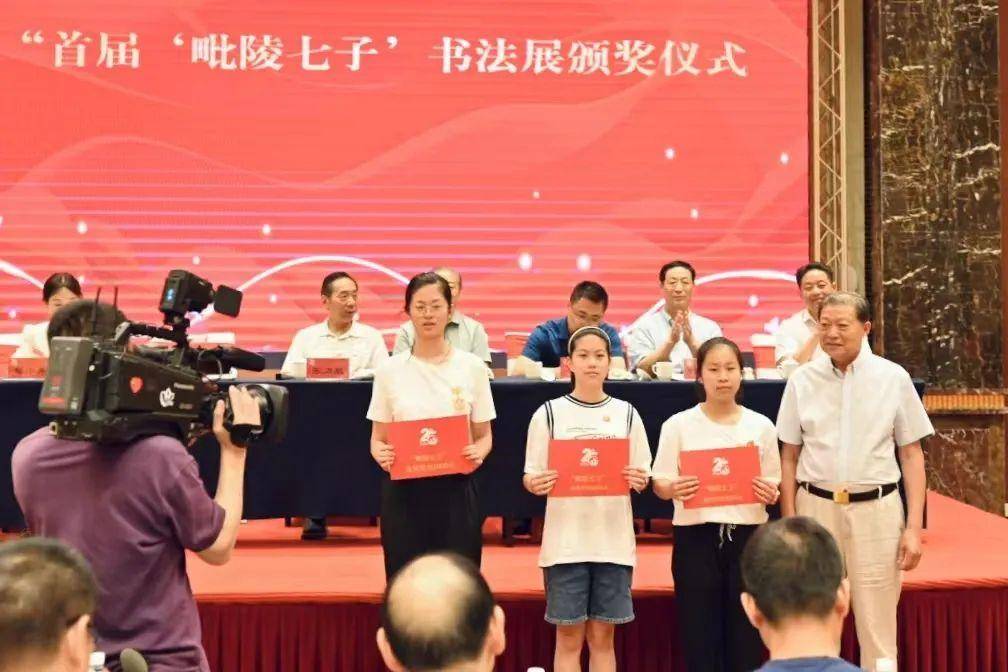 活动现场,张力航、朱剑伟为青少年分会首任会长叶鹏飞、第二任会长卢海洲、第三任会长张军佳颁发“艺苑师表奖”,阙长山为“首届‘毗陵七子’书法展”金奖、金奖提名奖、新秀奖的作者代表颁奖,纪松、陈清为“优秀团体”的代表颁奖,朱明辉、汤亚平为“优秀理事”的代表颁奖,张璀、陆旭东为“优秀骨干”的代表颁奖,叶鹏飞、卢海洲、张军佳为“优秀青少年会员”的代表颁奖,贾韬为“青少年志愿服务队”授旗。
