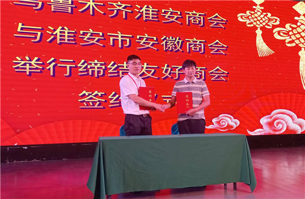 铁笔丹书,合作共赢。会议期间,乌鲁木齐市工商联与淮安市工商联签订战略合作协议;淮安商会与:安徽商会、淮安市健康产业商会、宿迁商会、乌鲁木齐扬州商会、乌鲁木齐连云港商会等,举行了友好商会签约仪式。