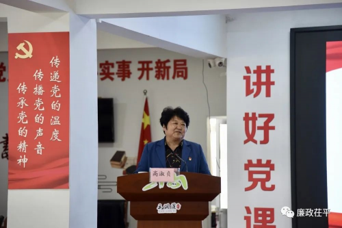 随后,大家来到三涧溪村党群服务中心。在学习现场,大家聆听了该村党委书记高淑贞同志的精彩微党课。