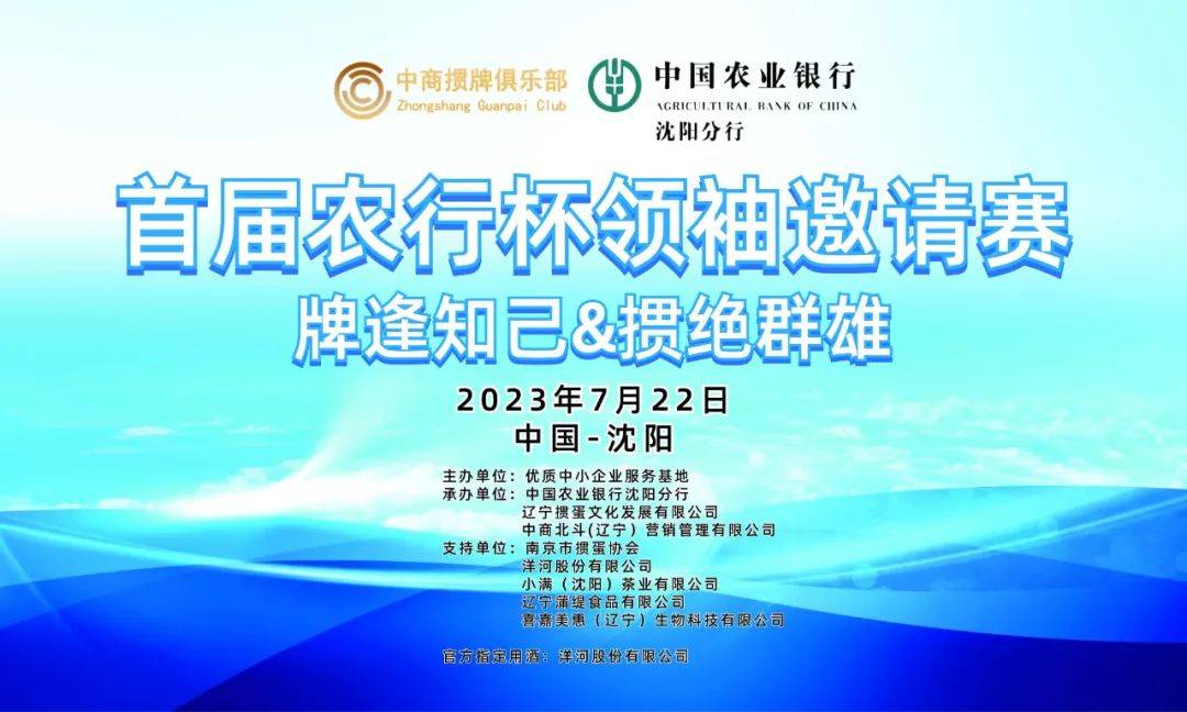 为积极推进辽宁亲商、重商、助商、营商的生态建设,倾情搭建辽沈地区金融行业、优秀中小民营企业协同合作、共建共荣的发展平台,持续增进政府、农行、专家与企业家们的情感互动,更好地服务于辽宁省民营经济健康发展和民营企业家健康成长,7月22日,由优质中小企业服务基地主办,中国农业银行沈阳分行、辽宁掼蛋文化发展有限公司、中商北斗(辽宁)营销管理有限公司承办的「牌逢知己 掼绝群雄」首届“农行杯”领袖邀请赛,将于中国沈阳盛大开战!
