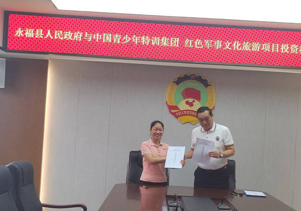 2023年7月21日,永福县人民政府与中国青少年特训集团,在永福县政协会议中心,有永福县莫正云县长与中国青少年特训集团董事局主席签订了投资协议,双方在经过多轮磋商,有中国青少年特训集团多次在永福考察论证,决定在永福投资军事文化旅游项目,永福县位于广西东北部,是首批命名的"中国长寿之乡;还是中国罗汉果之乡,中国民间文化艺术彩调之乡,全县土地面积2806平方公里,距桂林市35公里,距两江国际机场30公里,永福县茅江,洛清江,西江交汇处,有三江六岸水利风景区,风景资源丰富。