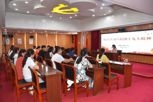 团的盛会鼓人心,贯彻落实见行动。7月28日下午,淮城街道团工委举办“学思践悟新思想,青春奋斗正当时”团的十九大精神报告宣讲会。团十九大代表、淮安市新安小学中队辅导员咸雪婷向团员青年传达、宣讲党中央致辞和团的十九大精神,激励广大青年立足自身岗位,感恩奋进,在推进中国式现代化建设中做出更大贡献。淮城街道各村居团支部书记、青年代表聆听宣讲。