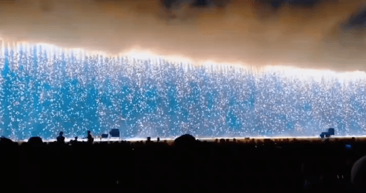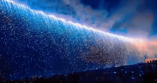 燃烧中的冷烟花形成了一道瀑布,像极了诗歌中“疑是银河落九天”的场景,震撼夺目!