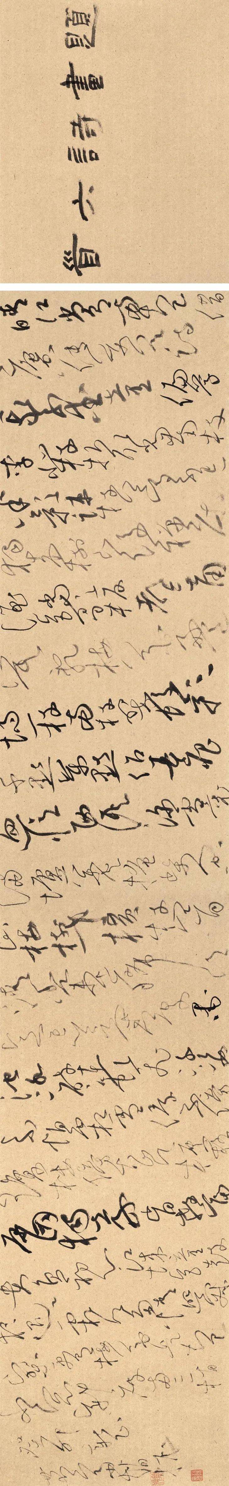 右宋米芾元章手书,其称乐兄同官不知为何人物,其字画奇壮,有可爱者,尝见东坡称其书超迈入神,盖其为人卓荦不羁,故书亦似之。临者谓草书之变始张旭,行书之变由米老 ;或又谓其神锋太峻,如仲由末见孔子时风气。然用草有法,要之自成一家,未易到也。