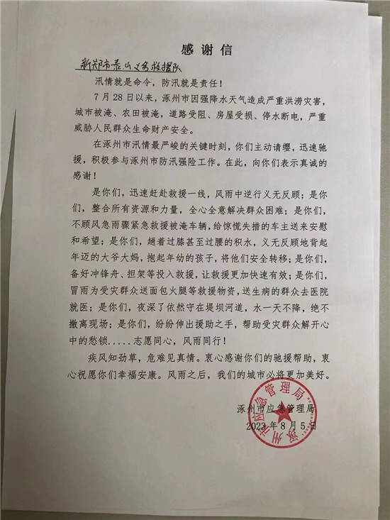 以上给救援过程造成了很大困难,最终不负众望,努力克服,齐心协力克服困难顺利坚持到最后所有队员安全归来,并顺利完成了本次的援助河北涿州特大洪水救灾工作!在此感谢新郑市龙湖镇政府,感谢默默付出奉献的所有新郑龙湖镇泰山救援队的全体队员。
