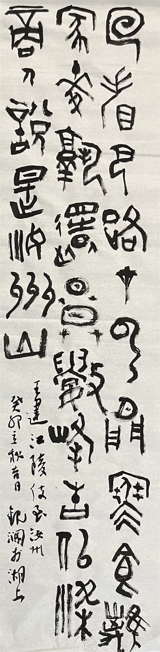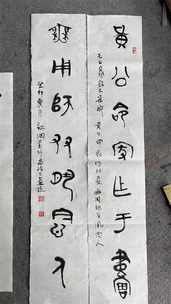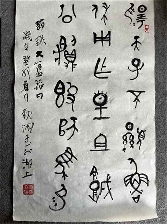 黄涛的才华,源于天赋,更源于热爱。他爱手中的笔,爱笔下的字,更爱着翰墨丹青下的风骨与灵魂,所谓观水有术,必观其澜。黄涛冷静的望着千百年丰厚的中国书法文化,以观水望澜的精神,一点一滴摸索书法的真谛,这或许也是他为自己拟观澜二字的意义。在日复一日的临摹与习练中,黄涛逐渐发现:欧阳得秀劲之骨,而乏温润之容。颜柳得庄严之貌,而失之板。李北海得豪挺之气,而失之疏窘。过庭得逍遥之趣,而失之俭散。旭、素得超逸之兴,而失之怪。赵孟頫得温雅之态,然过于妍媚,因此,他并不满足于模仿,而是集众家之所长,形成了自己独特的风格和字体,黄涛在传承隶篆书的基础上,将隶书的笔法融入篆书之中,形成独具特色的“隶篆”。他的篆书,以小篆为基础,结合大篆,同时糅入隶书笔法,行文落墨之时,以唐孙过庭《书谱》的遒劲之势为落笔之锋,又承米元章书得纵逸之致,一笔饱蘸墨汁纵横而下,落拓潇洒,结体自由大气,酣畅淋漓,盛唐雅宋之气象跃然于眼前。