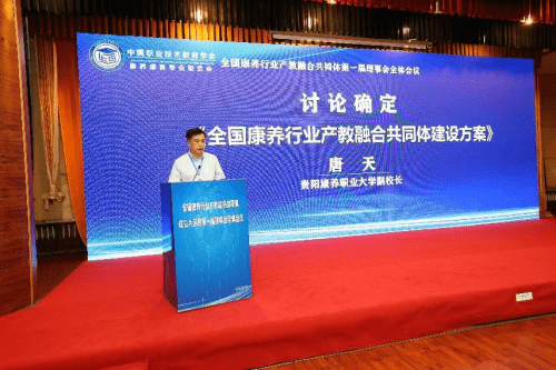 贵阳康养职业大学副校长唐天代表大会筹备组汇报《康养行业产教融合共同体建设方案》。建设方案提出,到2025年,要在康养行业产教融合共同体内部,院校专业布局与产业结构布局基本匹配,教育教学内容与岗位任务较好契合,院校人才培养与企业人才需求精准对接,技术协同创新成果有力支撑产品升级和工艺改进,政行企校协同育人模式基本成型,企业核心竞争力显著增强,产业集群国际化水平加速提升,康养行业产教融合共同体品牌效应基本形成。同时根据工作需要,拟在共同体架构下建设康养产教融合中心、康养人才培养中心、康养技术创新中心、康养信息资源中心和康养国际交流与合作中心等5个中心,实行工作任务项目清单制,并根据工作任务在共同体成员中选择牵头承建单位。