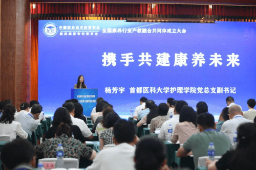 杨芳宇作题为“携手共建康养新未来”的发言。她强调,护理在康养事业中发挥着不可替代的作用,两者相互促进、互为支撑。首都医科大学护理学院将利用自身学科建设优势,与职业院校、行业企业携手共创康养事业的美好未来。