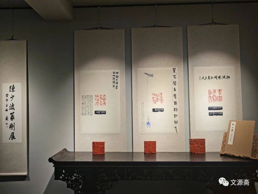 此次展览,得文源斋主之青睐,共为谋划。不仅展出印拓,而且展出原石。既有师友题跋之助兴,又有作者翰墨之辉映。使观者在看到其作品的同时,能够联想到其人。