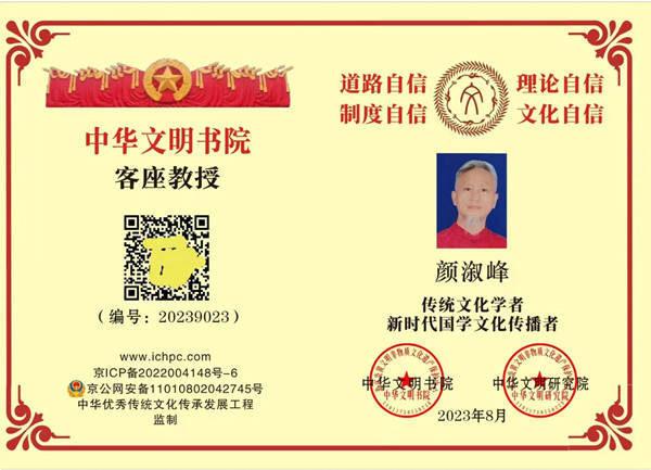 鉴于颜溆峰先生在易道文化应用方面取得的成绩和影响力,他多次应邀出席全国各地举办的中华传统文化论坛活动,多次被论坛组委会及相关国学研究机构授于“新时代国学精英人物”、“签约国学研究学者”、“当代易道文化模范人物”等殊荣。2023年8月,他又被中华文明书院、中华文明研究院聘为书院“客座教授”。真心希望颜溆峰先生百尺竿头、更近一步,为弘扬中华优秀传统文化、践行社会主义核心价值观做出新贡献,让自己的所学所研服务更多的有缘人。(中华优秀传统文化创新发展论坛组委会供稿)
