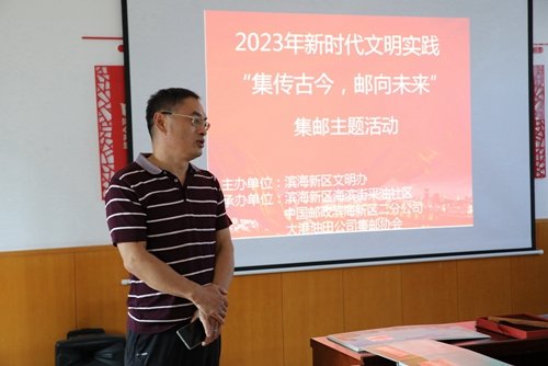 为了积极响应并参与“2023集邮周”活动,天津邮政滨海新区二分公司集邮与文化传媒部联手大港油田公司集邮协会共同组织了“2023集邮周——让集邮文化走近你我”主题活动。首场活动于2023年9月4日在滨海新区海滨街采油社区拉开帷幕,天津邮政滨海新区二分公司集邮与文化传媒部的白青山经理、大港油田公司集邮协会万俊峰秘书长都来到活动现场。