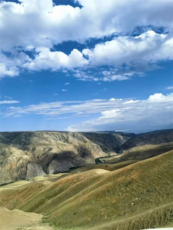 第一天到达安集海大峡谷,风云翻滚,茫茫草原的尽头大地,是被利箭深深劈开,偶然撕裂,呈现一条大峡谷横空出世,壮观于天地之间、万丈深渊。大自然的神功鬼斧,锋芒千回百转的安集海河流,静静的游于巨谷间,流水是潜入谷底的血脉或碧绿或橙黄的水流,冲刷清透着荒谷,剥离出沉沉的斑斓,壮美的狂野,壮丽的雄迈,气势磅礴,撼人心魄。感悟到人在大自然面前如此渺小、要扩大格局和胸怀。人生豪迈,贵有大气,朗朗乾坤,天地浩然,海纳百川,有容乃大,壁立千仞,无欲则刚。为人豁达大度、胸怀宽襟,养好大气,活出精神气质,活出想要的自己。