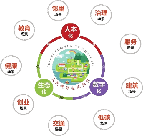 本地首个项目运营基于锦凤未来社区平台,以人民美好生活向往为中心,在聚焦人本化、生态化、数字化三维价值坐标的基础上,以和睦共治、绿色集约、智慧共享为内涵特征,突出高品质生活主轴,有归属感、舒适感和未来感的新型城市功能单元。构建以未来邻里、教育、健康、创业、建筑、交通、低碳、服务和治理等九大场景创新为重点的集成统一。策划方案中未来社区服务中心的日常服务主要由四大板块组成,分别为便民服务板块、居家养老板块、健康服务板块、开心社区板块。