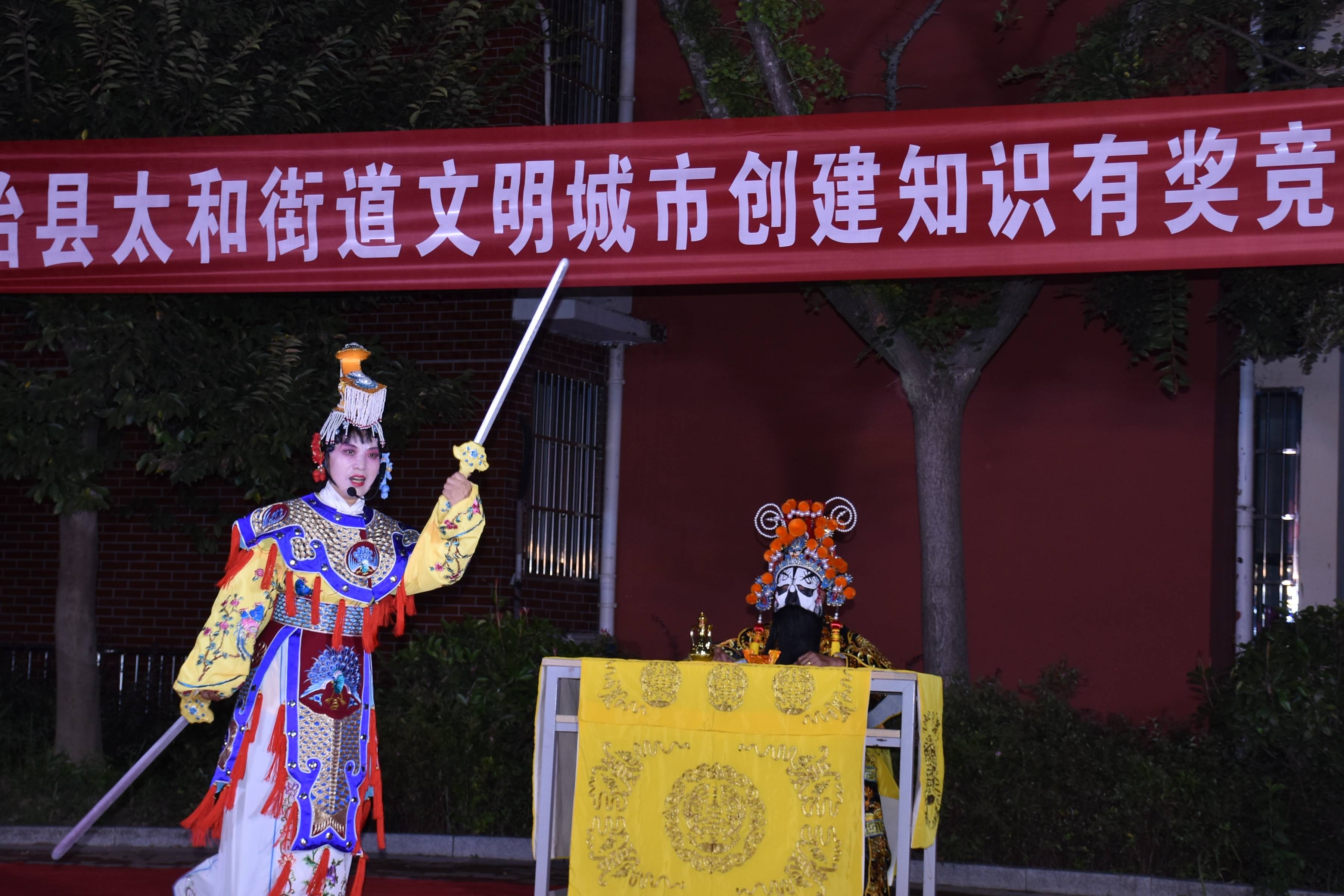 9月14日晚上,京剧票友协会和太和街道一道开展了一场别开生面的创建文明城市知识有奖竞答和京剧进社区活动。