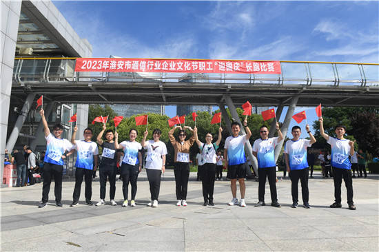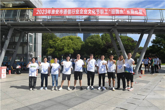 9月22日上午,淮安市钵池山公园内彩旗飘扬,乐曲激昂,在举国喜迎新中国成立74周年的喜庆日子里,淮安市通信行业协会举办的2023年淮安市通信行业企业文化节职工“庆国庆”长跑活动隆重举行。来自会员单位70名长跑爱好者参加比赛。这次长跑比赛,是对广大职工身体素质和工作风貌的一次展现,也是各单位争先意识和拼搏精神的一次展示,通过本次比赛必将进一步推进全市行业职工健身运动的开展,进一步营造快乐工作健康生活的良好氛围。全体参赛选手要发杨团结、友爱、奋进的良好风格,弘扬更高、更快、更强的体育精神,跑出激情、跑出活力、跑出精彩、跑出干劲、享受健康运动带来的快乐,各位工作人员认真严肃准确地执行裁判工作,力争把本次比赛办成一个文明、精彩、和谐圆满的行业员工的盛会。