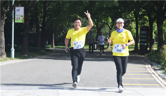 8点20分,各队按指示牌列队,由健身教练从专业角度指导大家进行了跑前热身和跑后拉伸活动,并讲解科学跑步方法,增强了员工的科学运动意识,随着健身教练有节奏的引示,全体参赛人员认真投入赛前20分钟热身准备,热身结束后,全员参赛队员挥舞手中的国旗在嘹亮的《我爱我的祖国》歌唱中,“我与国旗合个影”大家用喜悦的心情祝福祖国,喜迎国庆,抒发对祖国的热爱之情,共同畅想更加幸福美好的明天,场面令人振奋。