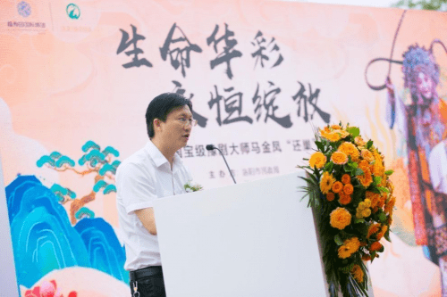 马金凤先生家属代表马泛浦致辞向所有来宾表达感谢,回顾了母亲不凡的百年人生。在洛阳,我母亲得到各级政府的关心和支持;在洛阳,她的艺术得到广大观众的拥戴,成为一个洛阳人使她引以自豪;在洛阳,她得到悠久深厚历史文化底蕴的滋养,使她在艺术上得到极大的发展,成为豫剧“五大名旦”之一,豫剧“马派艺术”创始人,创立了中国豫剧“帅旦”行当。“叶落归根”“魂归故里”。洛阳是我们这个家庭的第二故乡,因此,今天在这里为她树立纪念铜像,便具有更加特殊的意义,这既是对先母生前洛阳情怀的慰藉,也是对戏曲工作者与观众之间深厚感情的珍视。