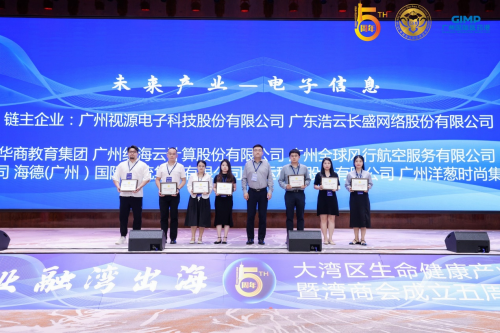 本次论坛邀请了未来生命健康、绿色低碳、智能装备、电子信息、材料等产业集群会员代表,进行了首批“未来产业 融湾出海”企业授牌仪式,相关产业集群的链主企业和代表企业上台接受荣誉牌匾。