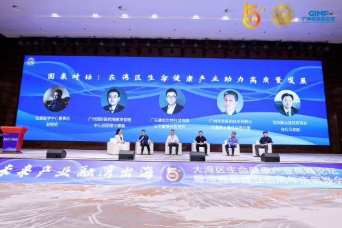 随后,赵智明、卞德强、陈贤帅、刘锋以及马如彪走上主台,在主持人的主持下,踊跃围绕"在湾区生命健康产业助力高质量发展"议题进行圆桌高质量对话。