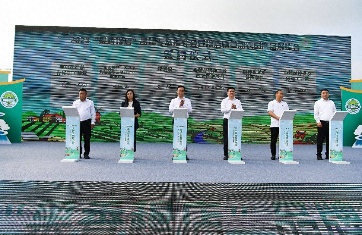 在现场,包括华光农旅融合、中药材种植及深加工、稻稼香龙虾公园、果蔬品牌推介及直采直供等多个项目进行现场签约。其中,投资规模达1亿美元的华光农旅融合项目是由华光(上海)投资有限公司董事长赵何琍琍在盱眙的又一助农投资。赵何琍琍介绍,华光(上海)投资有限公司多年前在当地成立了华光现代农业发展有限公司,并与穆店镇政府签署了合作开发协议。目前,已建成包括柿子、葡萄、无花果、桃子、网纹瓜、梨、草莓在内的多品种果园。新签约项目总占地面积14397.31㎡,包含农业和旅游两大板块。“我们将建设一个结合种植、畜牧、食品加工、科研、医疗、养老、休闲度假、观光旅游为一体的现代农业田园综合体项目。未来,项目不仅助力推动地方产业结构调整,还能提供农产品销售渠道、就业岗位等,进一步助力乡村振兴。”赵何琍琍说。