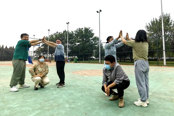 活动一开始,大家先用“松鼠与树洞”的趣味小游戏进行热场,两人协作搭起了“树洞”,一只快乐的“小松鼠”在树洞中穿梭,工作中不苟言笑的科研人员此时就像个孩子一样露出纯真的笑容。随后,正式开始“托球绕标”比赛,每组6名员工依次用乒乓球拍托着乒乓球绕过2个“障碍”绕8字,按照用时长短评判名次。运动员各个身手矫健,灵活自如的绕行在“障碍物”前,团队成员之间的交接棒自然娴熟,像极了工作中地质人员与油藏工程人员的无缝协作,操场上不断传来叫好声,活动在一片喧闹中完满结束。