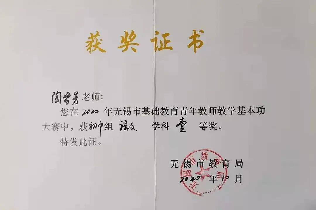 2020年 无锡市基础教育青年教师基本功大赛初中组语文学科一等奖