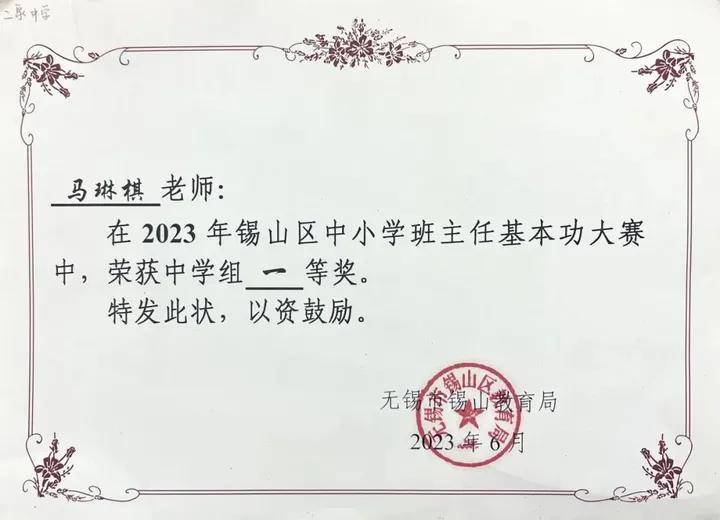 2023年 锡山区中小学班主任基本功大赛一等奖
