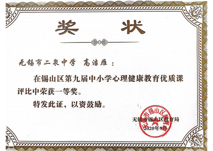 2020年 锡山区中小学心理健康教育评优课一等奖