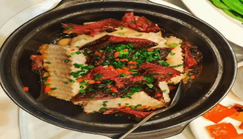 图为百合蒸酱鸭