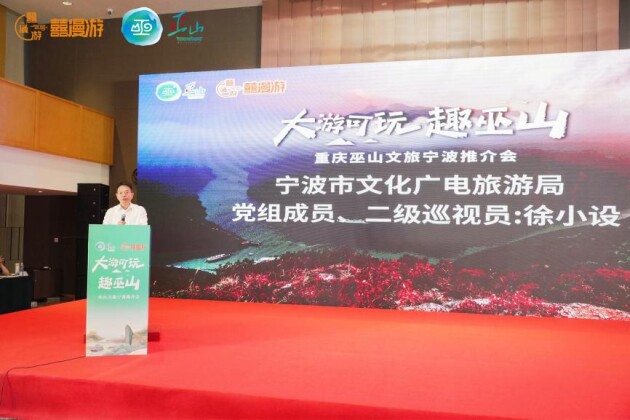 宁波市文化广电旅游局党组成员、二级巡视员徐小设向出席本次会议的重庆巫山政府、旅行社代表、各大媒体及企业家们表示诚挚的欢迎,也向大家介绍了宁波丰富的文旅资源,表示希望借助此次推介会能够不断加强宁波和巫山之间的文化交流,让更多的宁波人民了解巫山的自然资源,亲身感受巫山“万山红遍、层林尽染、灿若烟霞”的惊艳,也真诚欢迎巫山的朋友们走进宁波,感受宁波的海洋文化与江南水乡的风情。