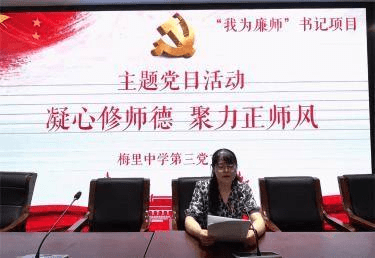 为紧紧围绕“学思想、强党性、 重实践、建新功 ”的总要求,坚持学思用贯通、知信行统一,梅里中学党总支部以廉洁自律 为抓手,深挖学校“廉师 ”资源,厚植梅里“廉教 ”根基,秉持“教人先做人,万事廉为先 ” 的原则,通过“畅廉育人 ”行动,实践“六廉六好 ”,着力解决理论学习、政治素质、能力 本领、担当作为、工作作风等方面的突出问题,扎实推进主题教育,建立一支“廉洁自律 ”、“爱岗敬业 ”、“正直担当 ”的廉师队伍,营造党风清廉、校风清明、教风清正、学风清新 的教育环境。