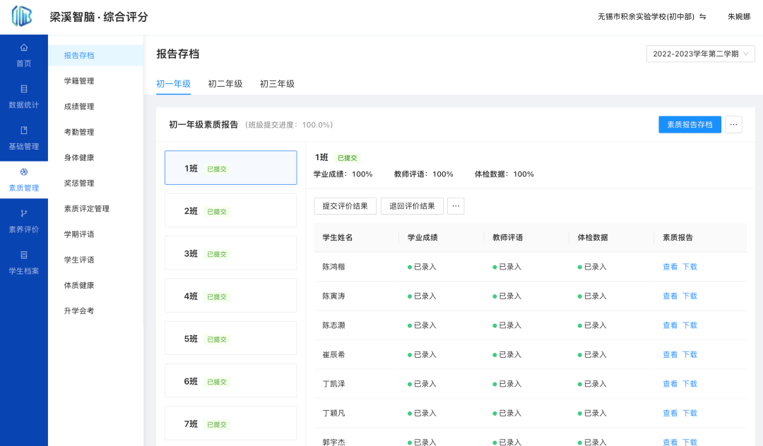 优化数字化评价系统聚集学生发展五育融合,学校不断创新综合素质评价体系,智慧评价过程数字化分析呈现,贯穿学习生涯始终。“绿色评价系统”让教师、家长、学生参与学习、生活、德育、社会实践等全方位教育评价过程,多方协同有效提供多元、精准、全面的数据维度,为学校提供数据链和工具链的支持。