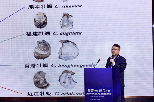 会上,国家级大蚝领域科研权威专家前来给大家做精彩主题分享,国家贝类产业技术体系种质资源鉴定与新种质创制岗位专家、中国海洋大学李琪教授就我国牡蛎养殖与新品种培育情况做了分享。