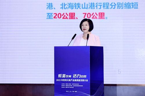 会上钦州市钦南区委常委、统战部部长、副区长黄荡开上台讲话,从区位与优势、主导特色产业、重大项目与发展定位、招商重点等四个方面介绍钦南区渔业产业发展情况并作招商推介。